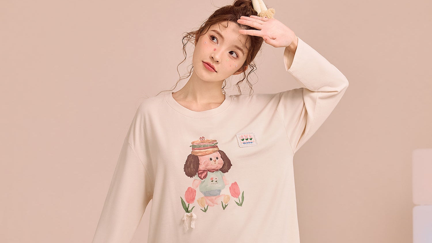 Cream Puppy Garden Pyjama Set – Sweet Lace-Trim Nightwear