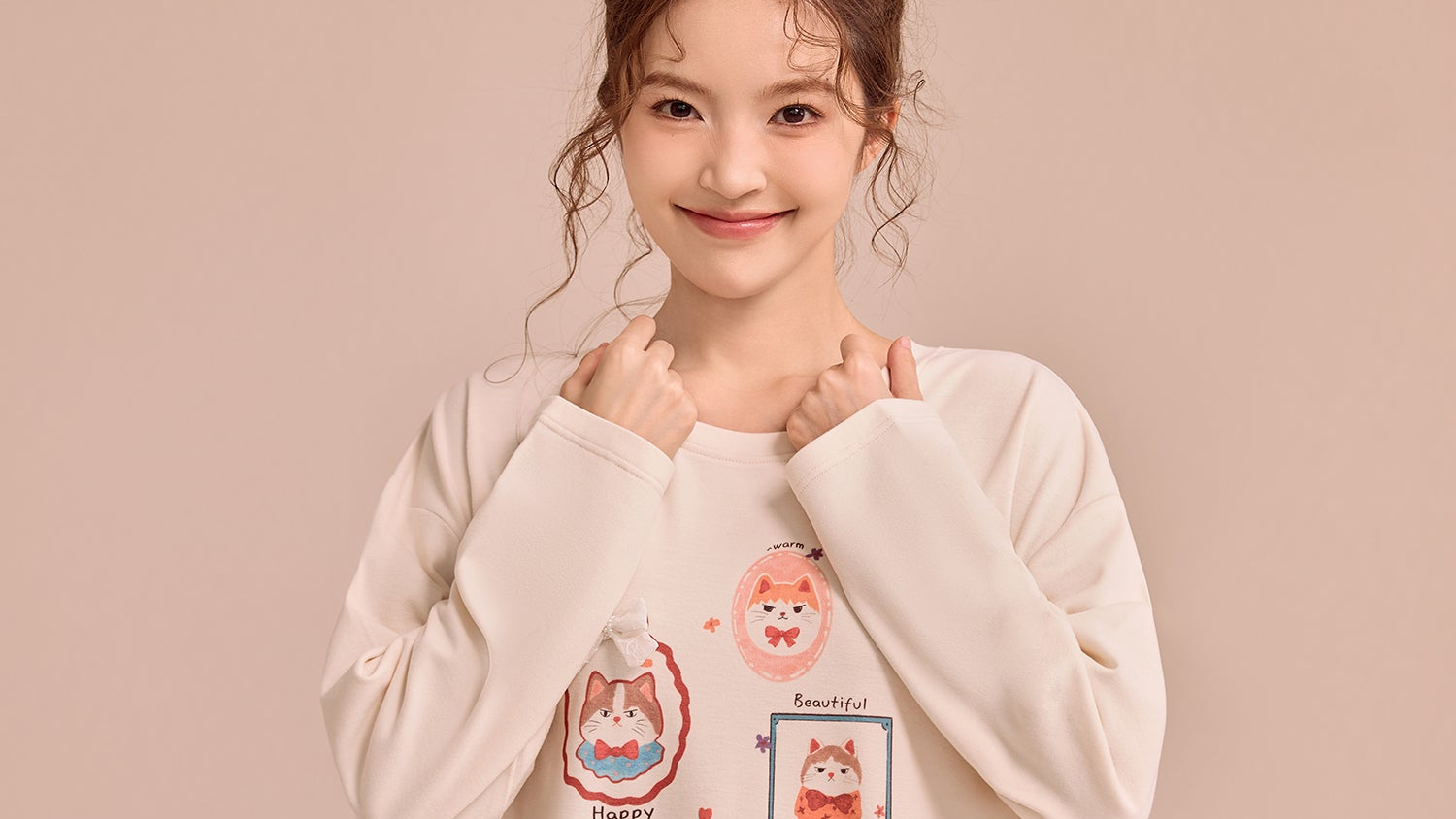 Float away to dreamland in our Happy Cats Pajama Set. This two-piece ensemble features a soft, cream-colored long-sleeve top adorned with a collection of whimsical, happy cat illustrations and a sweet, inspirational quote. The delicate scalloped lace trim adds a touch of charm, while the soft, pinky orange wide-leg pants are covered in a cheerful print of the same cute felines. Crafted for ultimate comfort, this set is perfect for cozy nights and lazy mornings.